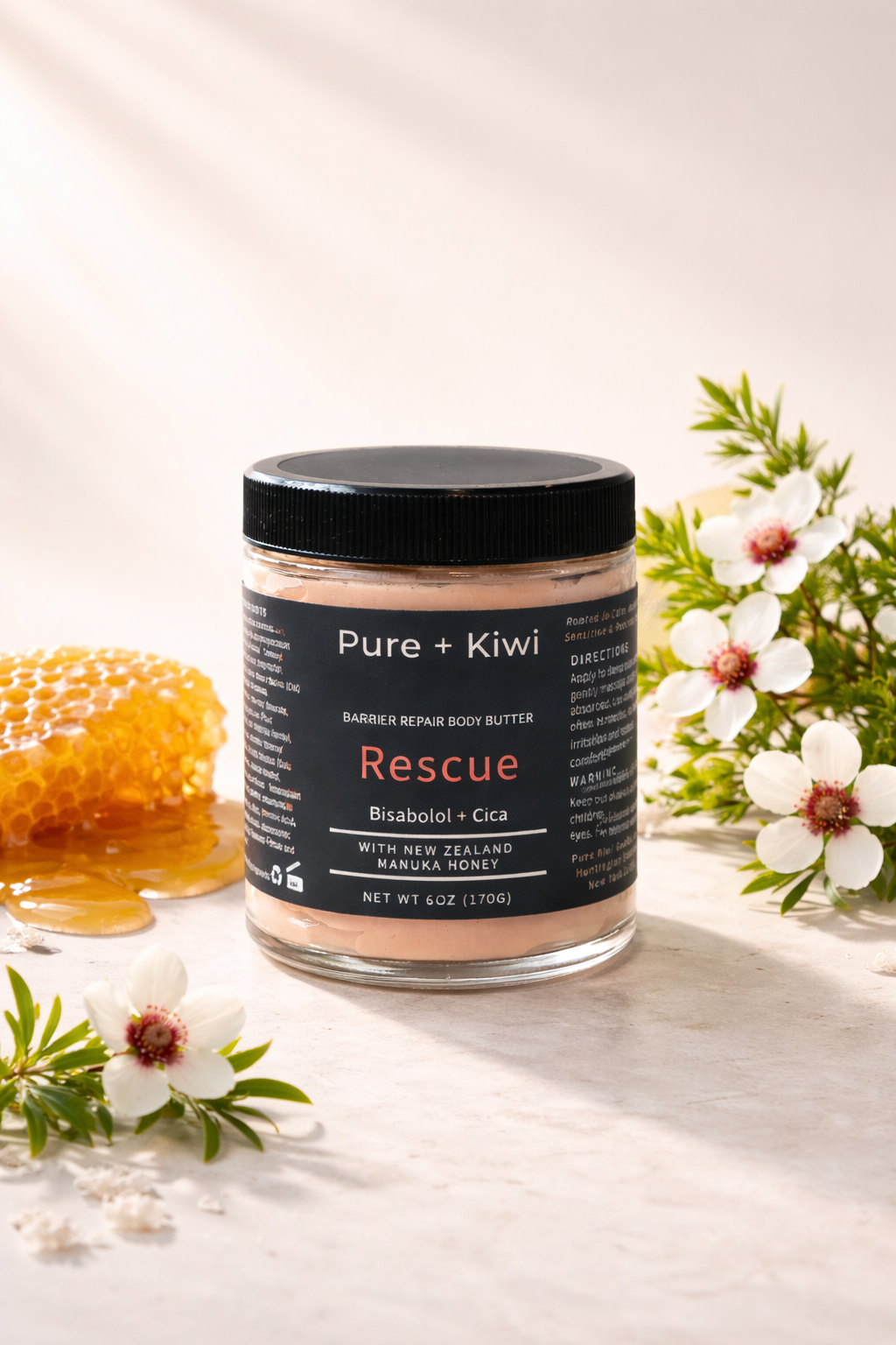 Rescue is designed as a barrier repair body butter for very dry, reactive, eczema/psoriasis-prone skin.