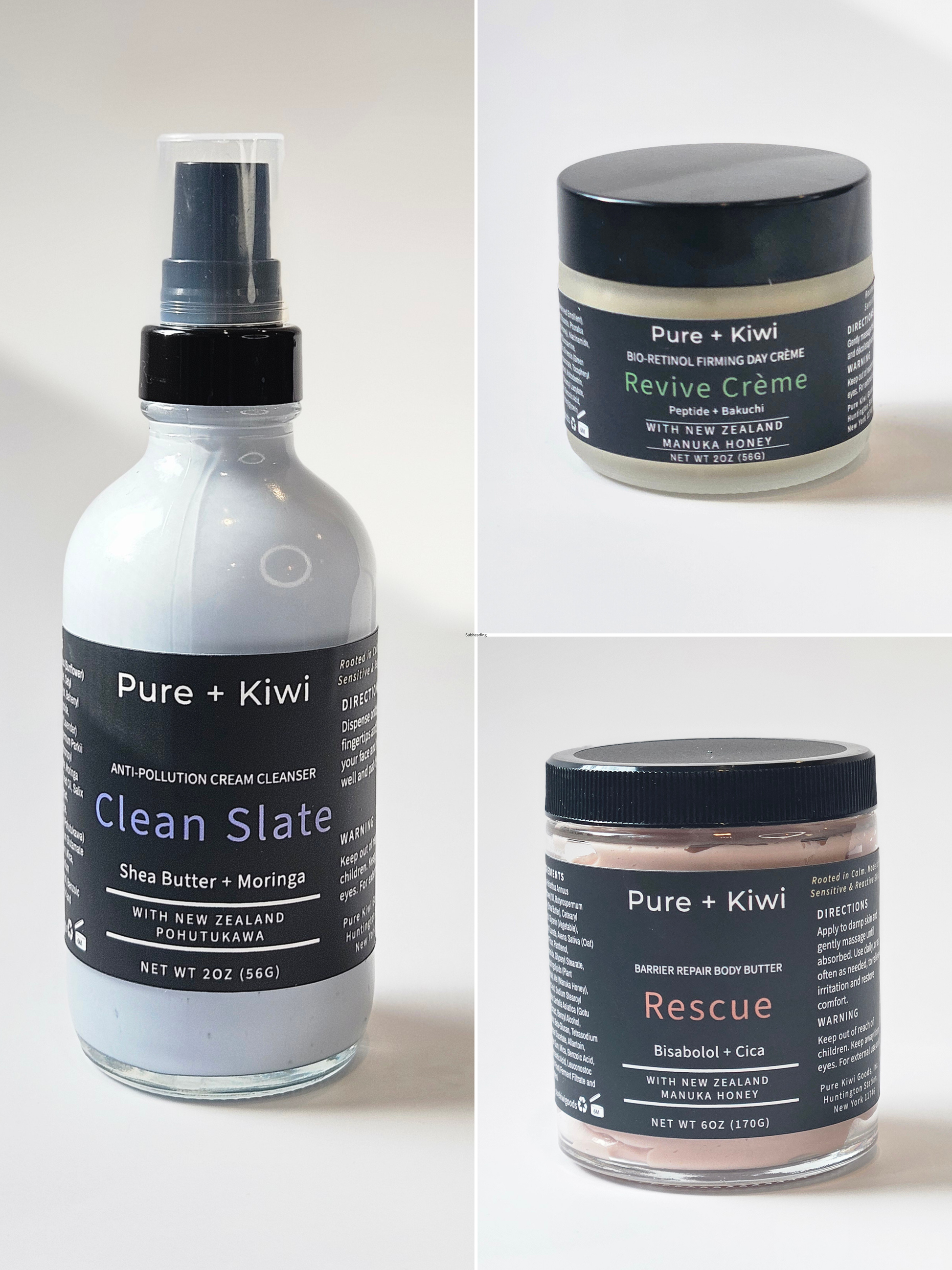 If your skin reacts to everything, harsh cleansers and random actives often make it worse. Pure + Kiwi helps you cleanse without stripping, calm flare-prone skin, and seal in a barrier-first routine made for sensitive, eczema- and rosacea-prone, acne-prone, and hormonally reactive skin. Our difference: consistency over intensity -New Zealand botanicals paired with proven actives in a routine your skin can actually stick with.