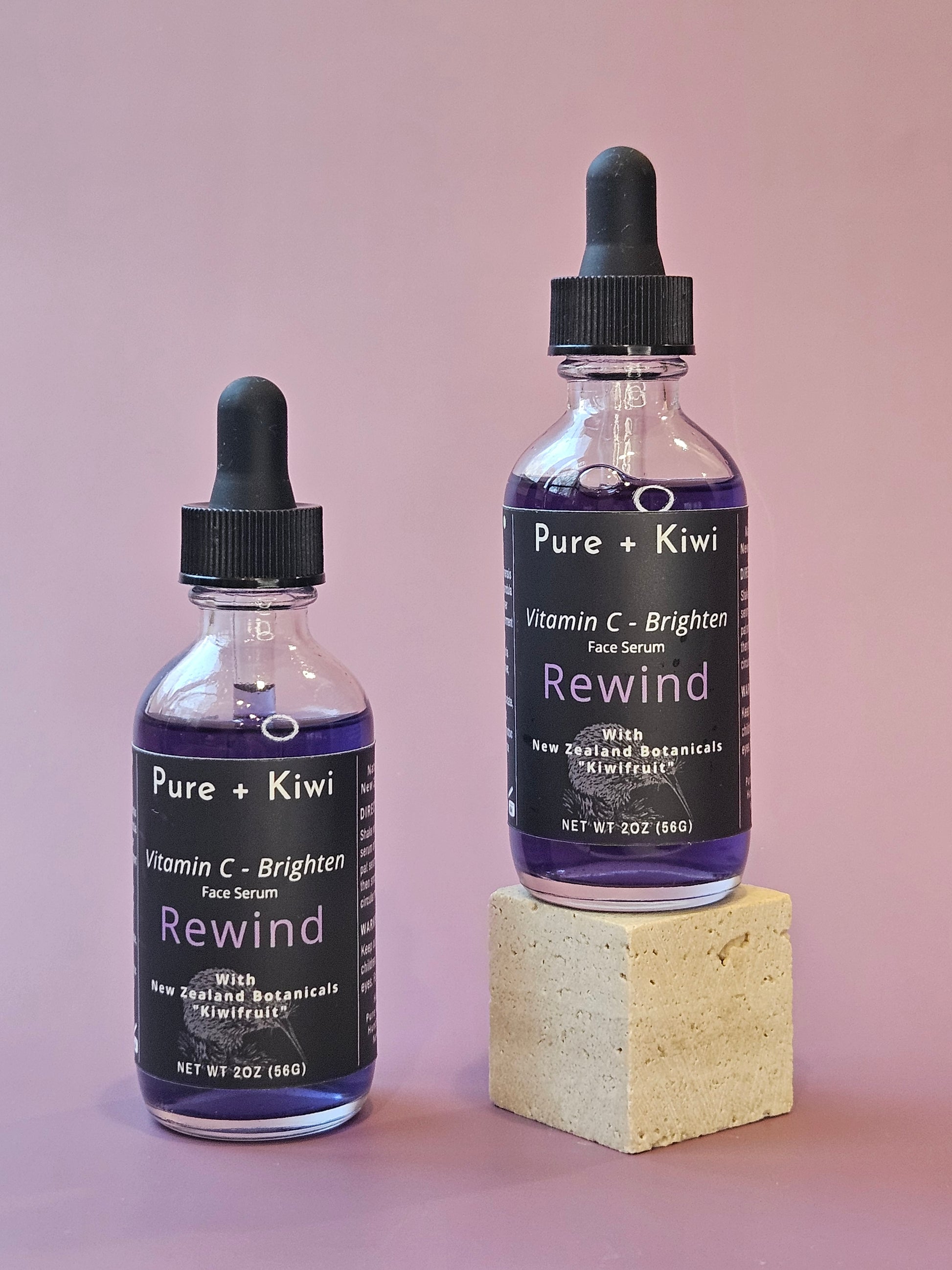Our Vitamin C Brightening Serum (Rewind) was made to deliver results without irritation — bright, smooth skin powered by New Zealand botanicals.